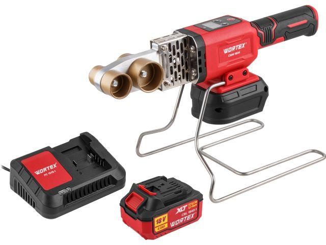 Аккум. сварочный аппарат для полимерных труб WORTEX CWM 1834 ALL1 XLT SET с акб и зу+3 насадки